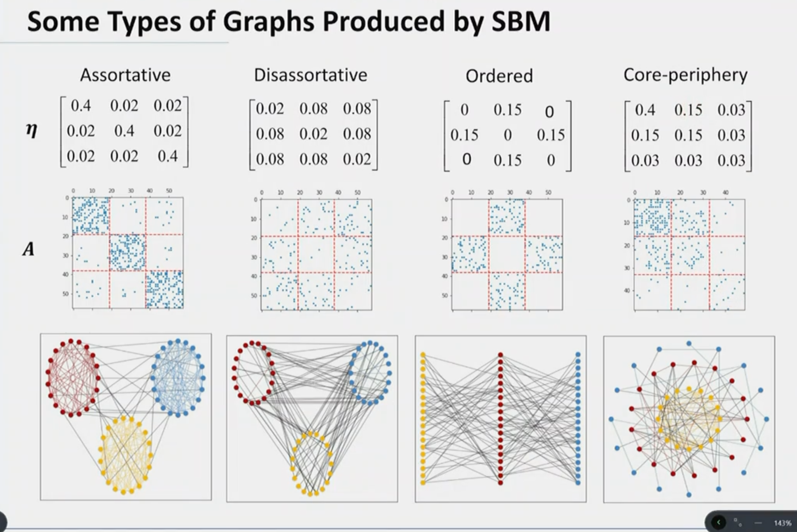 - \(p_{ij}\): Edge probability between communities \(i\) and \(j\).