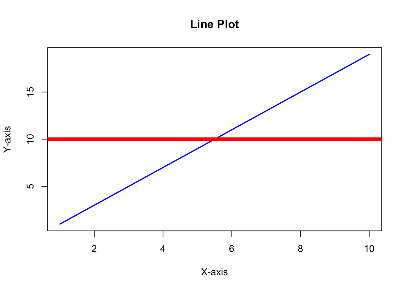 plot(1:10, seq(1, 20, 2), type = "l", col = "blue", lwd = 2, main = "Line Plot", xlab = "X-axis", ylab = "Y-axis")