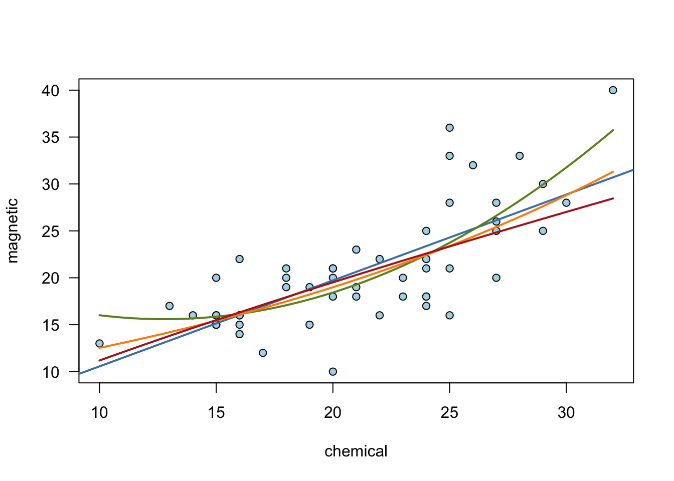 elinear[i] = (yk - predict(linear, data.frame(x = xk)))^2