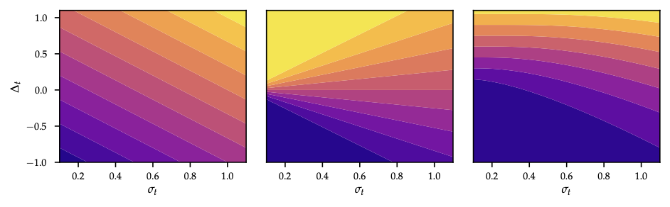 - Posterior variance update \(\sigma_{t+1}^2=(1-\lambda)(\sigma_t^2+\sigma_x^2)\) where \[\lambda=\frac{\sigma_t^2+\sigma_x^2}{\sigma_t^2+\sigma_x^2+\sigma_y^2}.\]