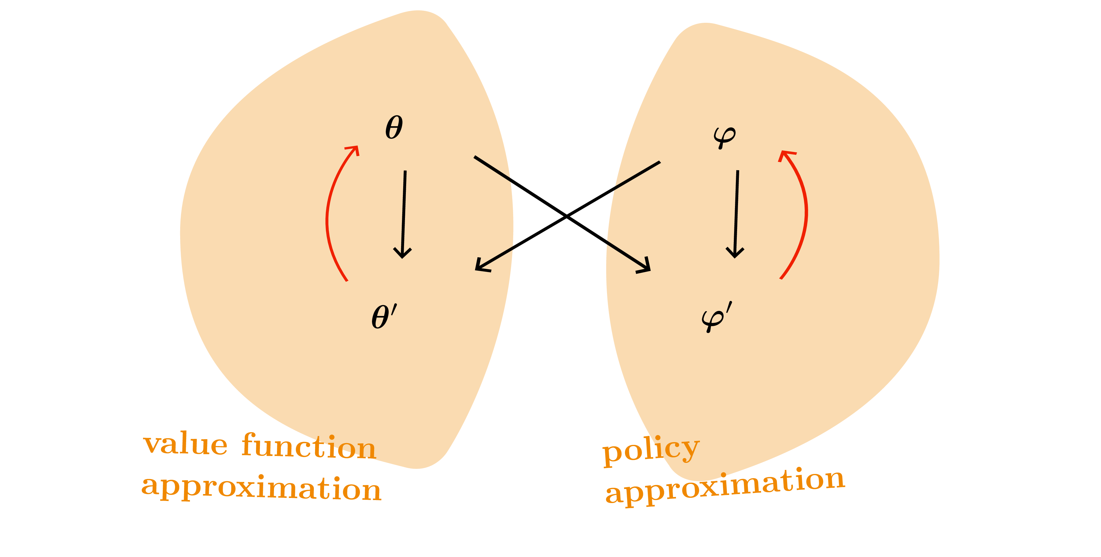- Actor = policy \(\pi_{\varphi}\), critic = value/Q \(\hat{Q}_{\theta}\).