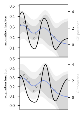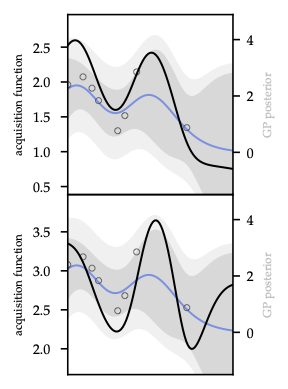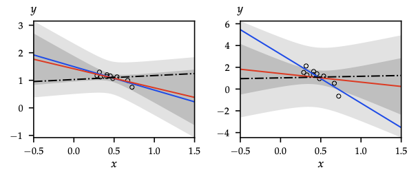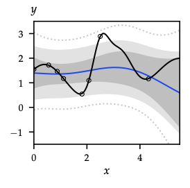 - Observed target \(y^*\mid\mathcal{D},\mathbf{x}_*\sim\mathcal{N}(\mathbf{x}_*^\top\mu,\mathbf{x}_*^\top\Sigma\mathbf{x}_* + \sigma_n^2)\).