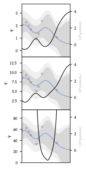 - Maximizing evidence trades fit term \(\mathbf{y}^\top\mathcal{C}^{-1}\mathbf{y}\) vs complexity term \(\log|\mathcal{C}|\); useful for hyperparameter tuning across Bayesian models.