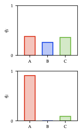 - Softmax / Boltzmann: temperature-driven action weighting.